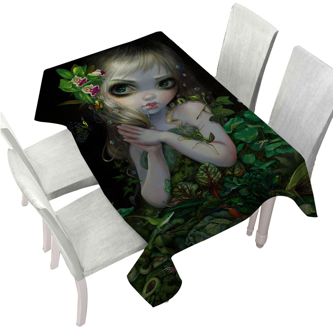 Surrealism Art Prints Green Goddess Girl Tablecloth