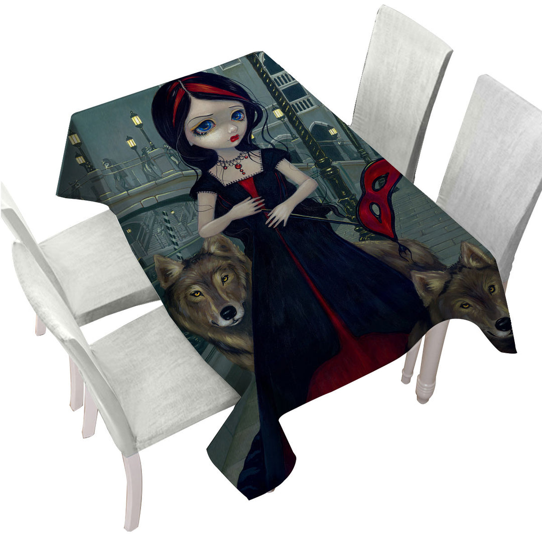 Wolves of Venice Gothic Maiden and Her Wolves Tablecloth