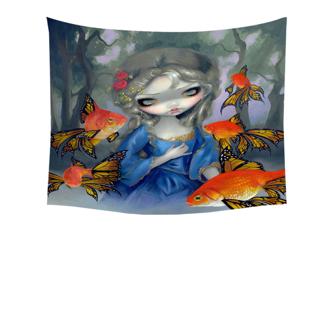 Beautiful Girl and the Goldfish Butterflies Tapestry
