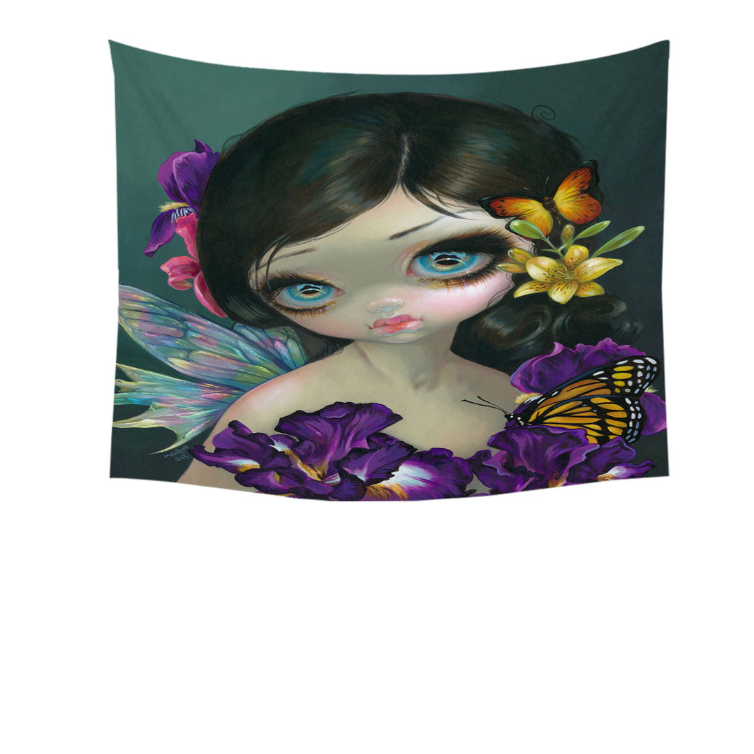 Beautiful Girl Fairy with Iris Enchantment Flowers Tapestry