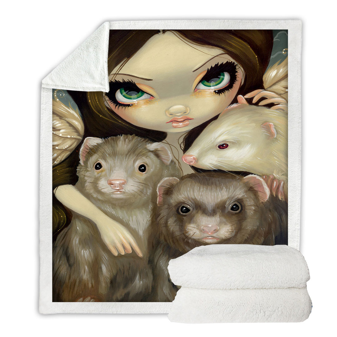 Angel with Ferrets Throw Blanket