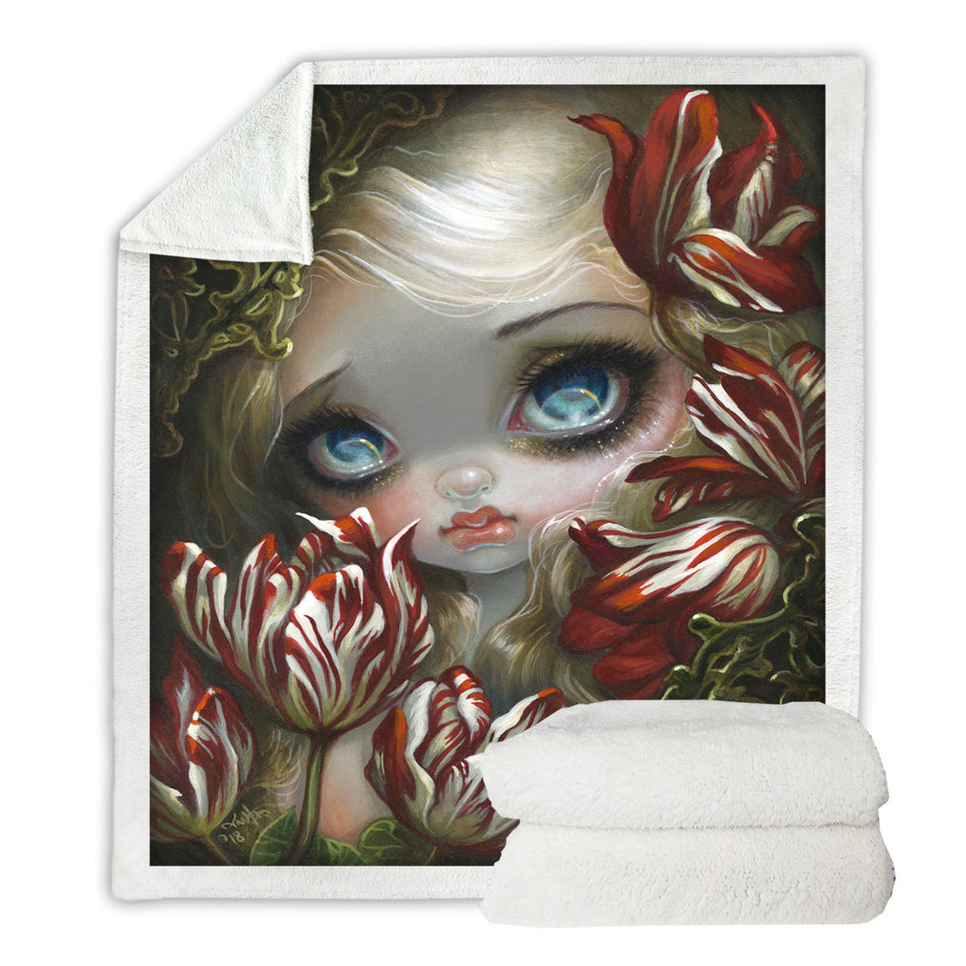 Art Painting the Language of Flowers Tulips Girl Throw Blanket