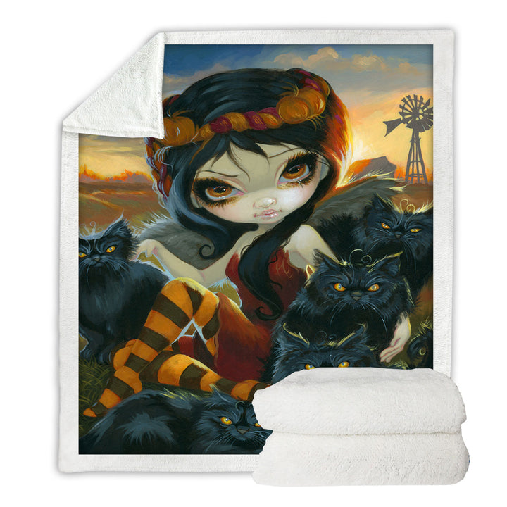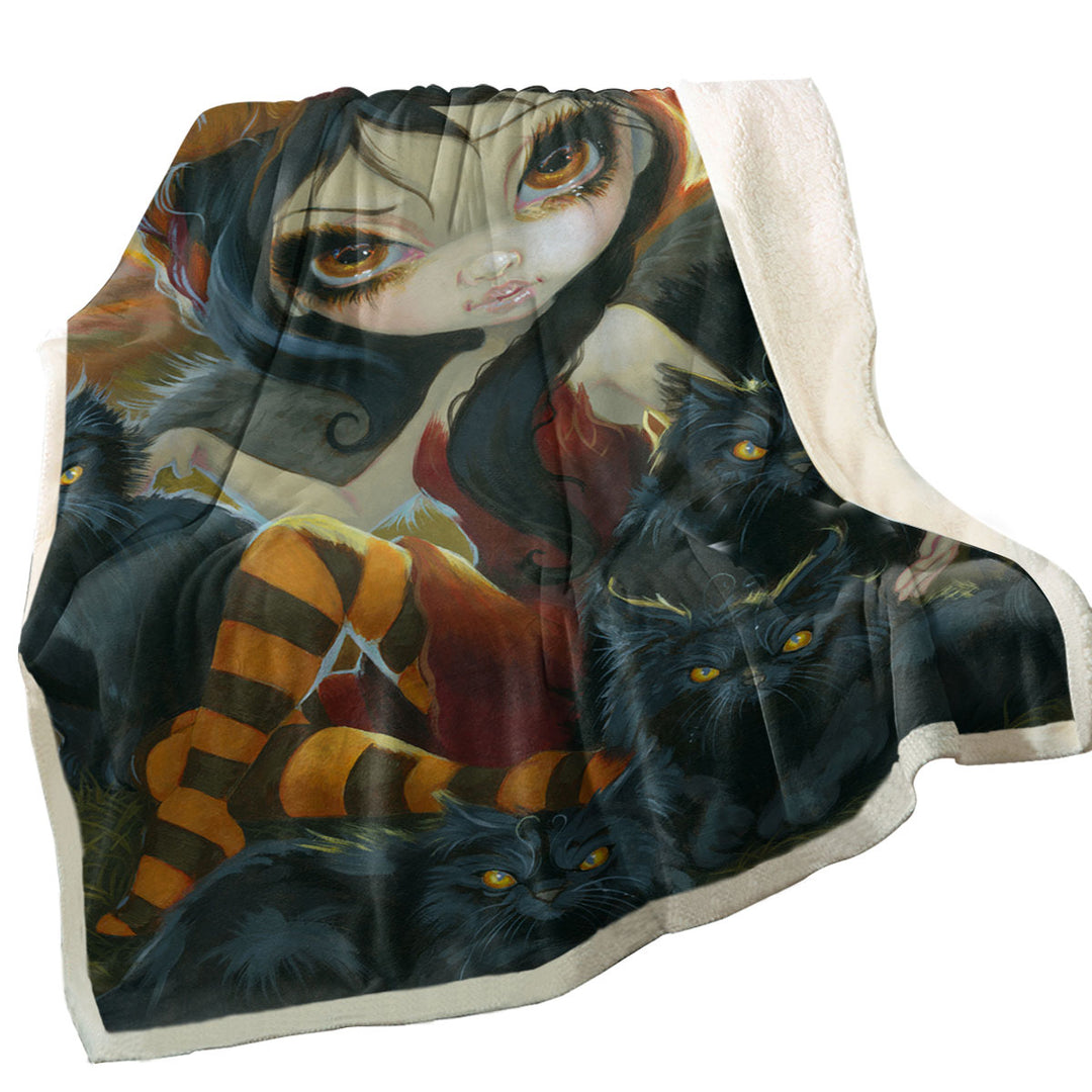 Autumn Kitties and the Dark Angelic Fairy Throw Blanket