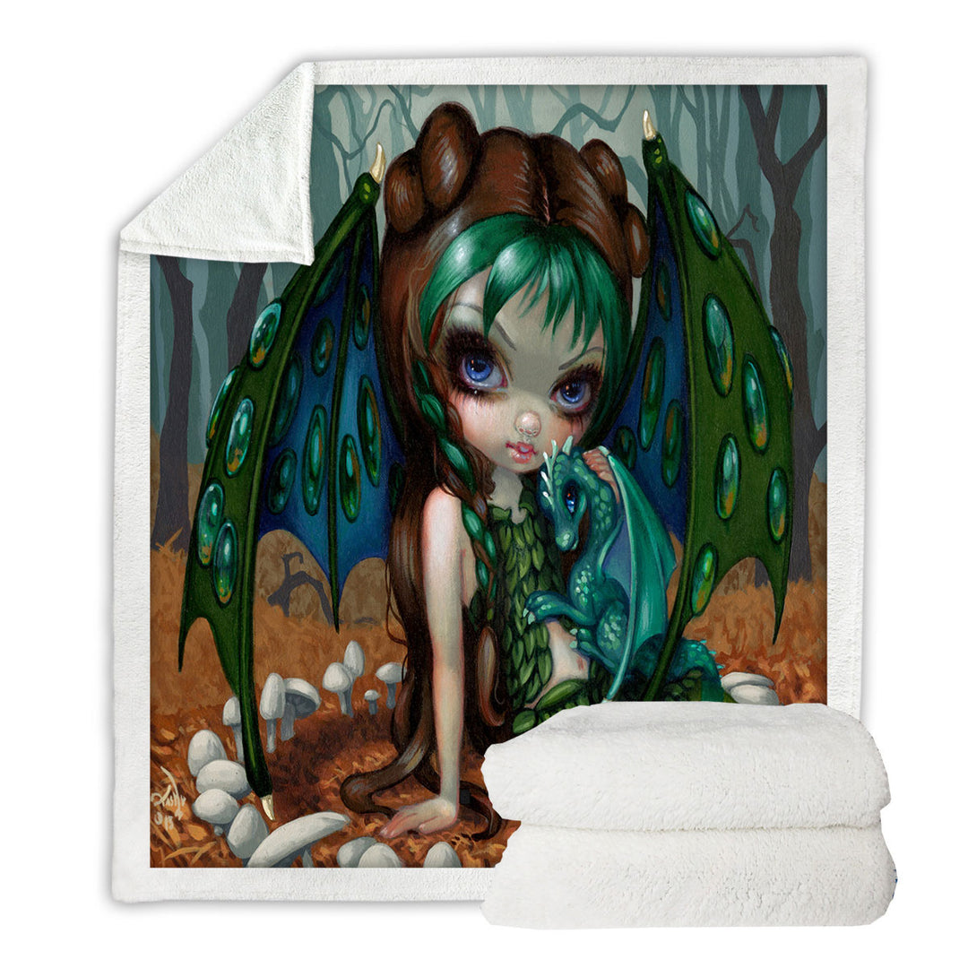 Beautiful Dragon Fairy and Her Ivy Dragonling Throw Blanket