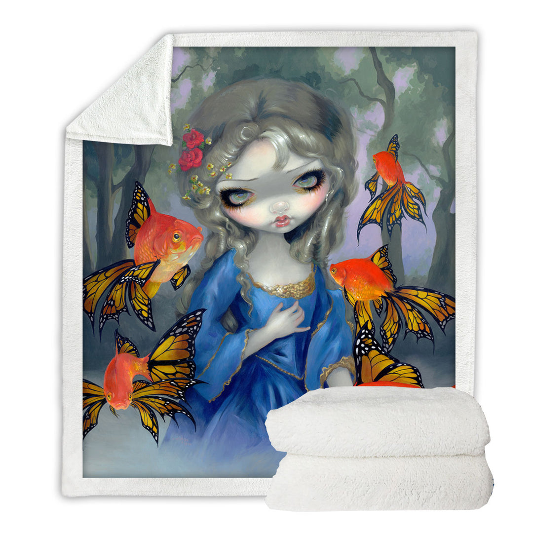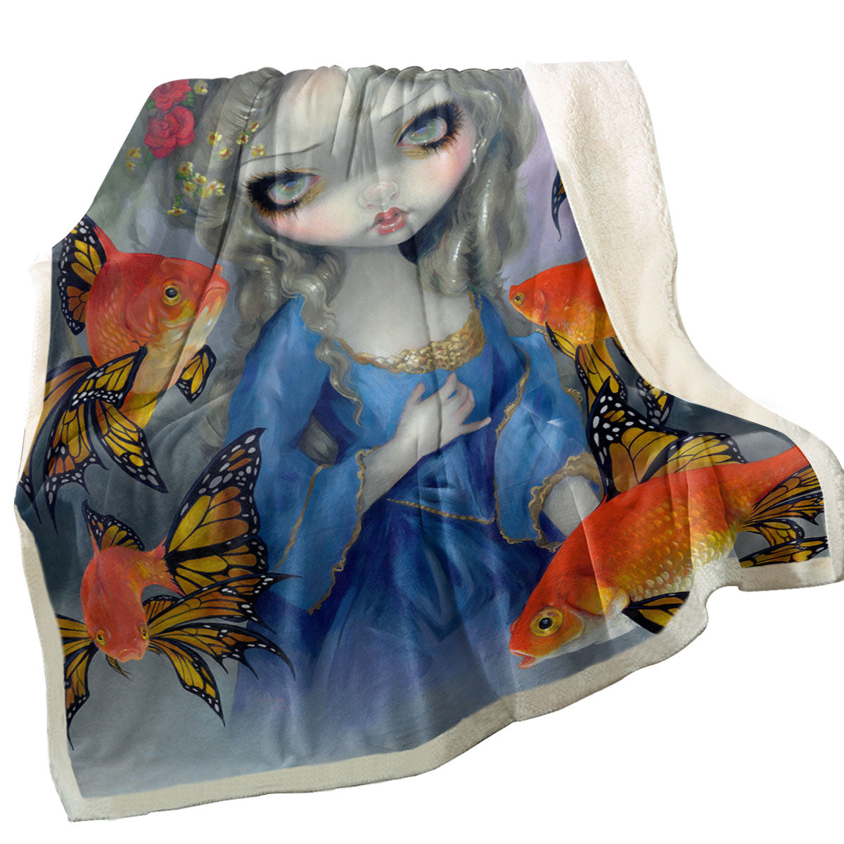 Beautiful Girl and the Goldfish Butterflies Throw Blanket