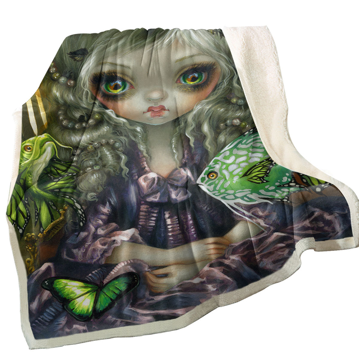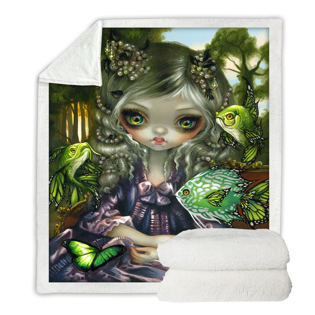 Beautiful Girl and the Green Fish Butterflies Throw Blanket