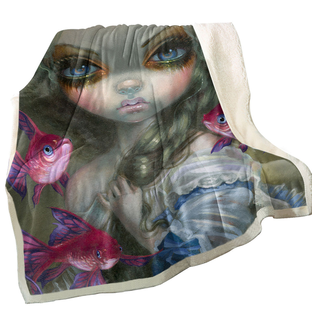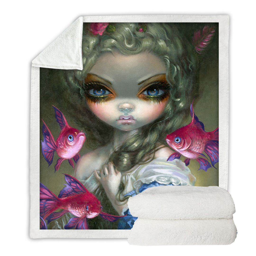 Beautiful Girl and the Pink Fish Butterflies Throw Blanket