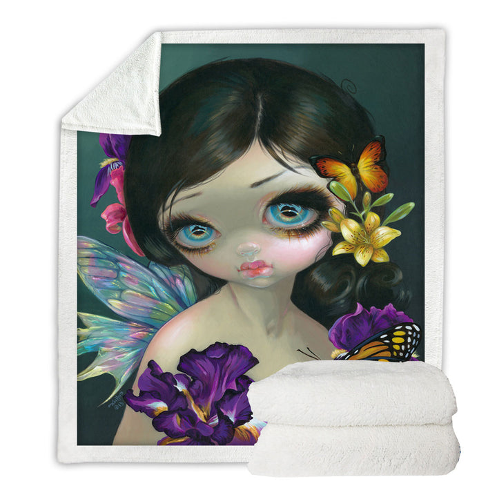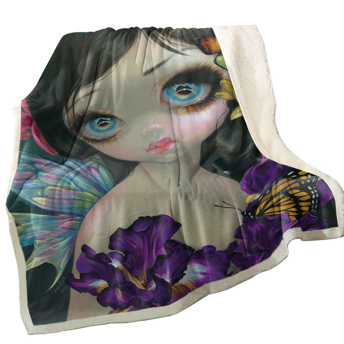 Beautiful Girl Fairy with Iris Enchantment Flowers Throw Blanket