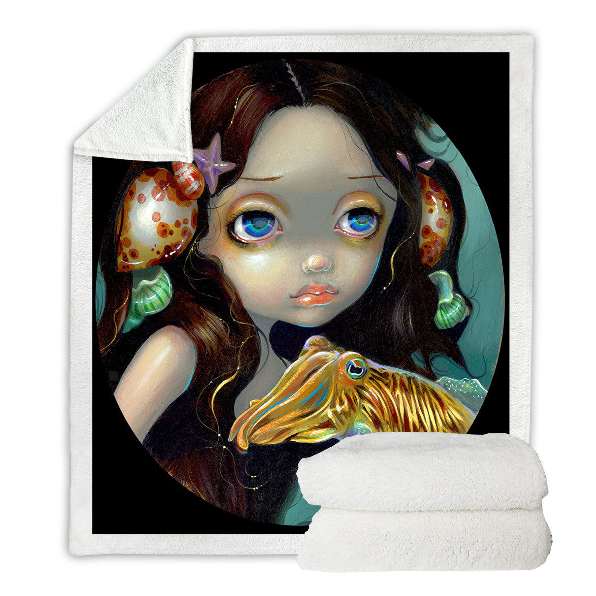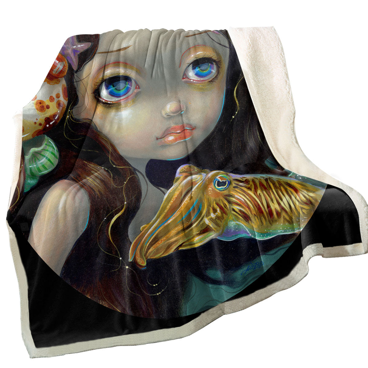 Beautiful Girl Sea Nymph with Cuttlefish Throw Blanket