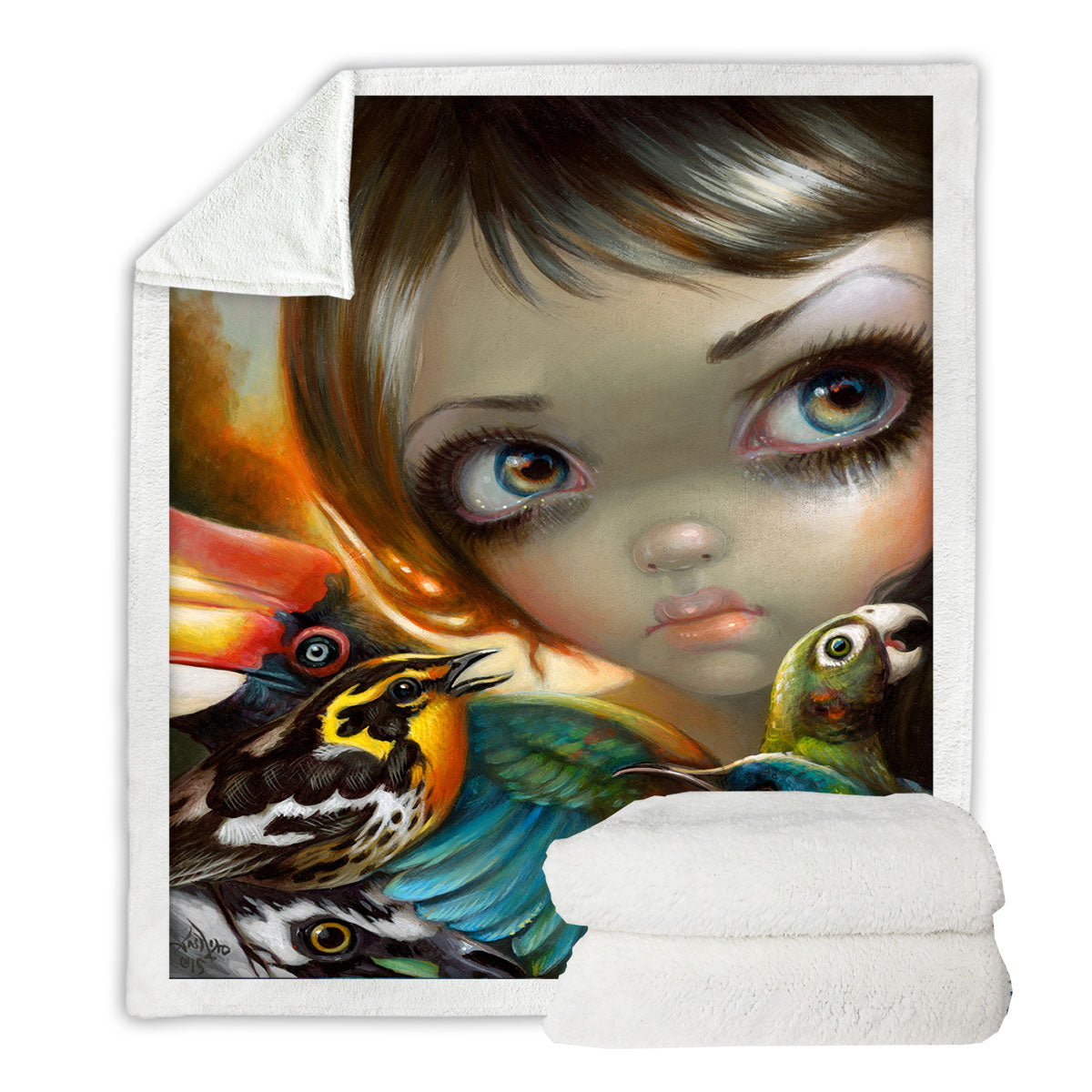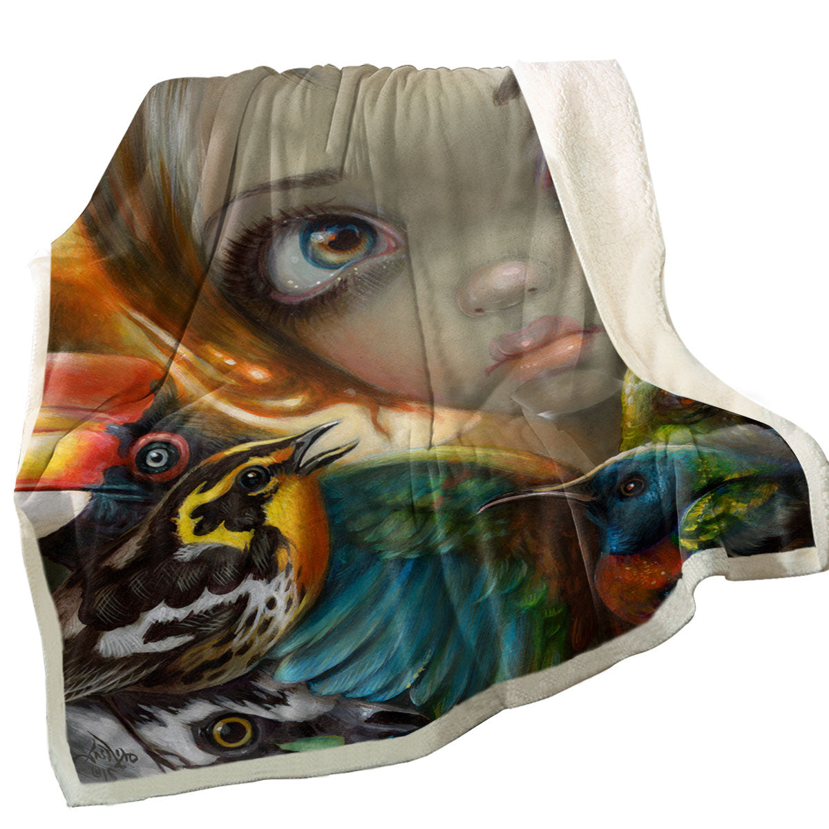 Colorful Art Birdsong Beautiful Maiden and Birds Throw Blanket