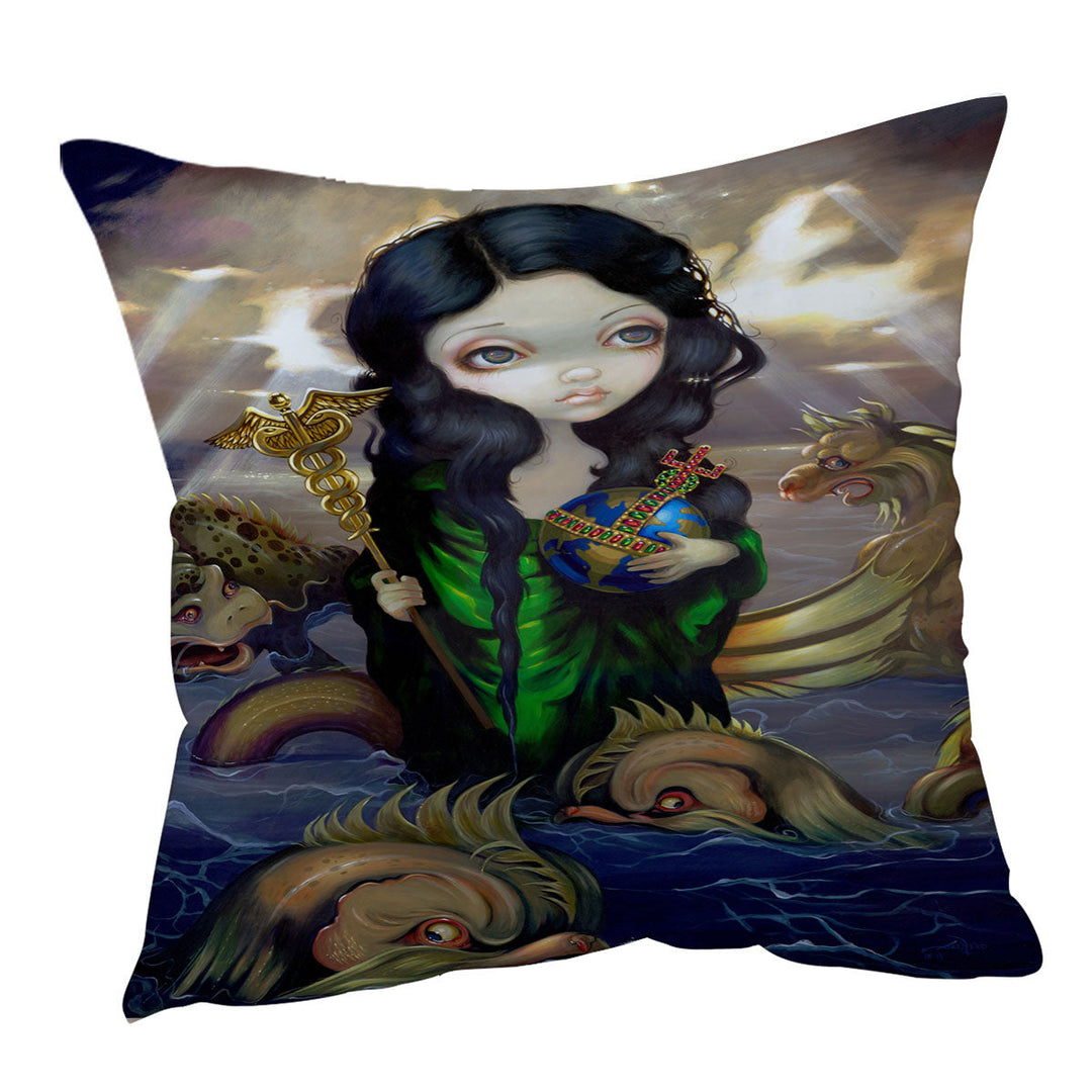 Alchemical Seas Sea Maiden and Monsters Spirits Throw Pillow