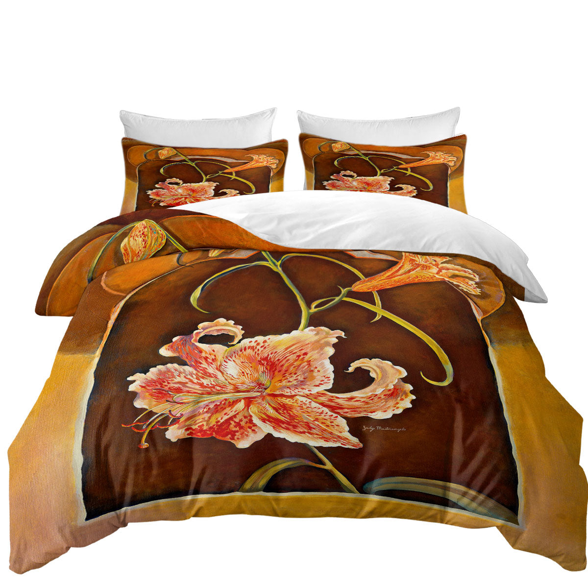 Floral Art Tiger Lilies Flowers Duvet Cover