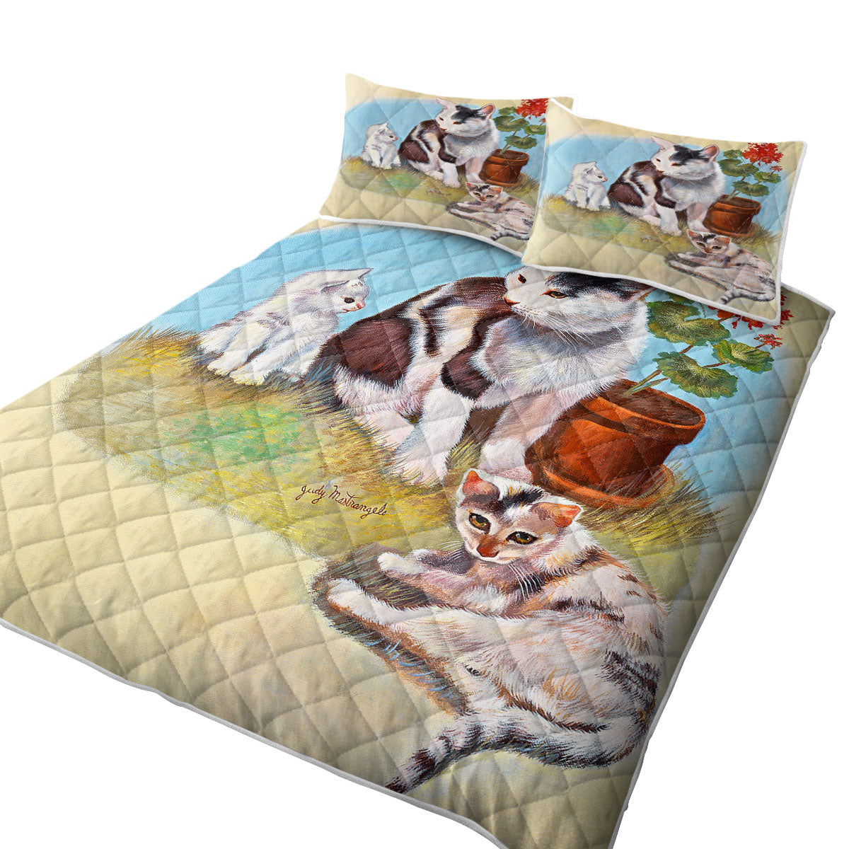 Lovey Cat Art Painting Momma Cat and Kittens Quilt