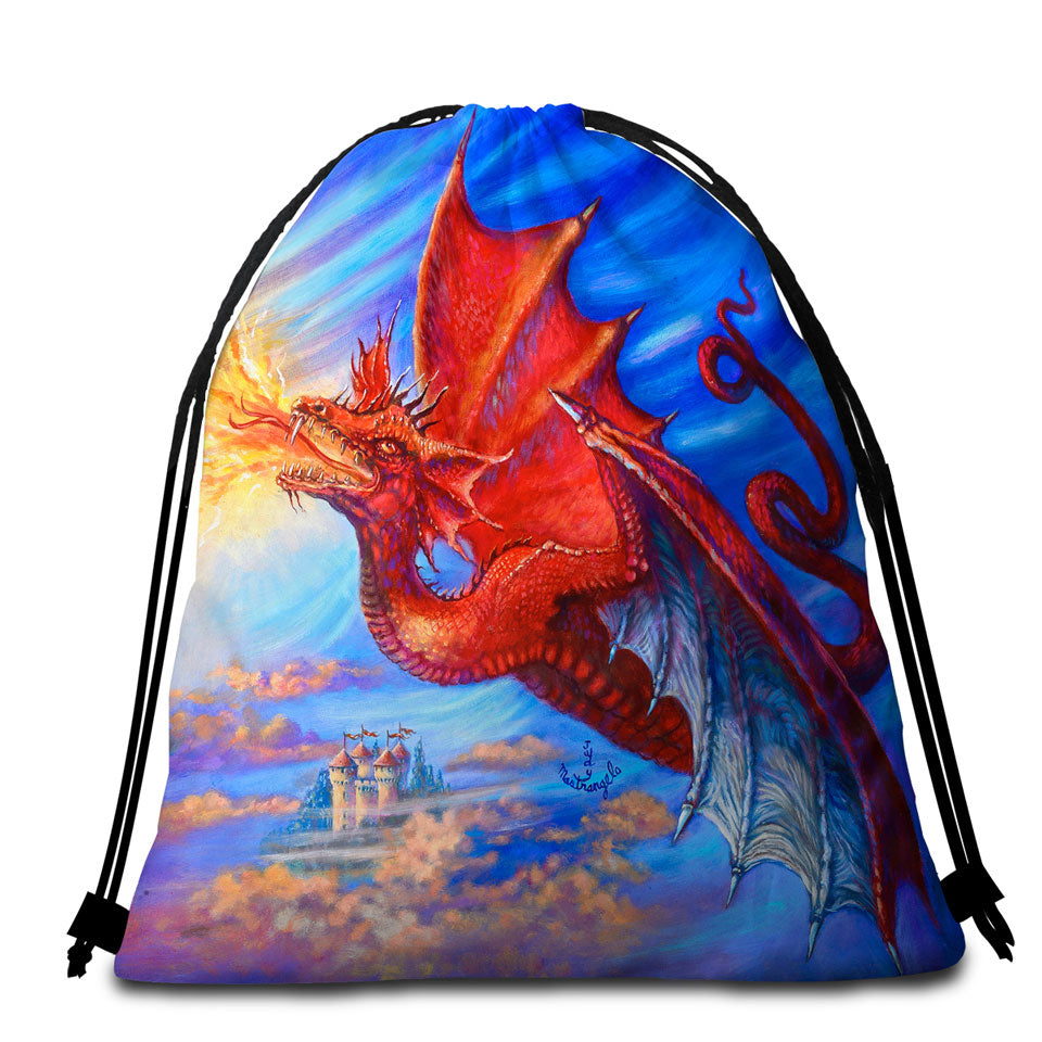 Cool Fantasy Art Breathing Fire Red Dragon Round Beach Towel