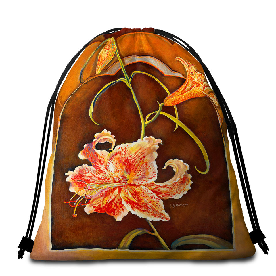 Floral Art Tiger Lilies Flowers Round Beach Towel