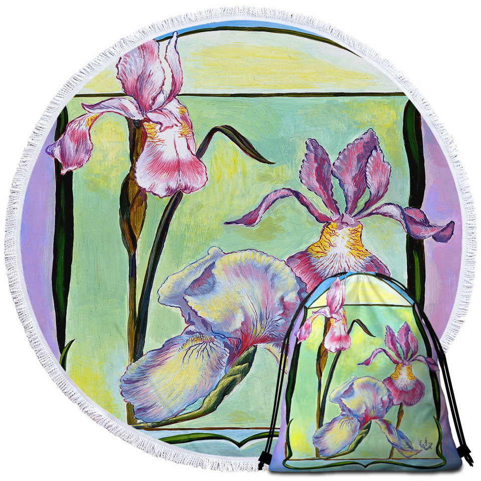 Flowers Painting Art Deco Irises Beach Towels and Bags Set