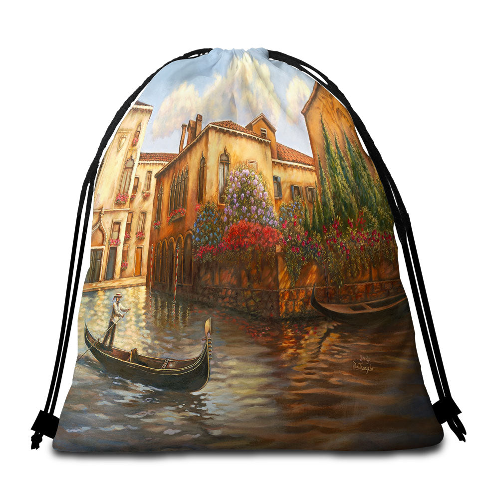 Venice City Art Painting the Gondola Round Beach Towel