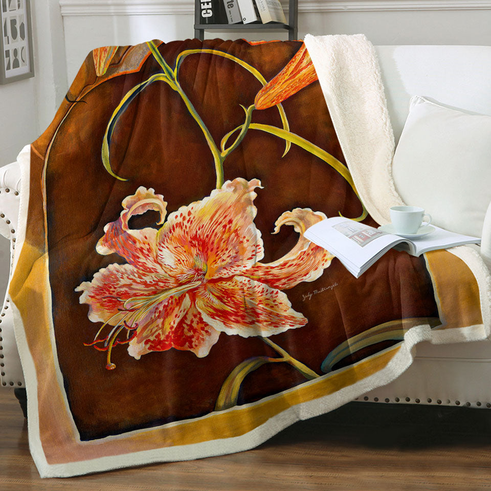 Floral Art Tiger Lilies Flowers Throw Blanket