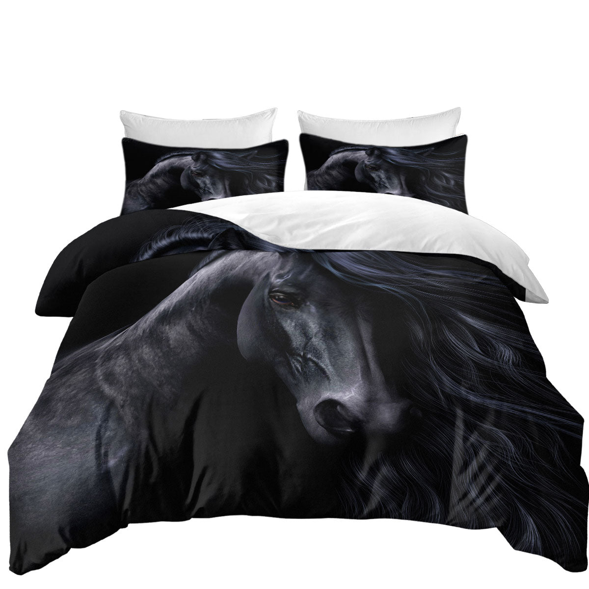 Elegant Horse Art the Black Duvet Cover