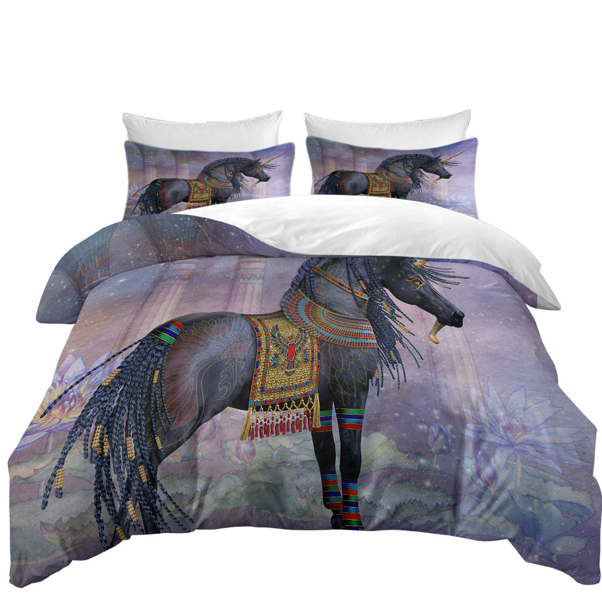 Water Lilies Black Horse Duvet Cover