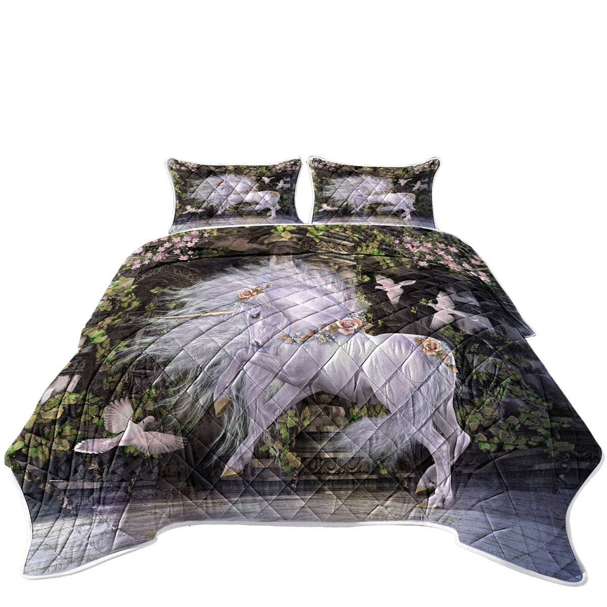 Noble and Graceful White Horse and Doves Quilt