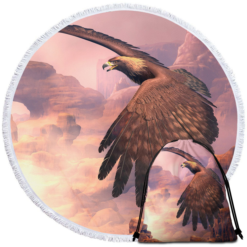 Canyon Flight Nature Art American Eagle Round Beach Towel