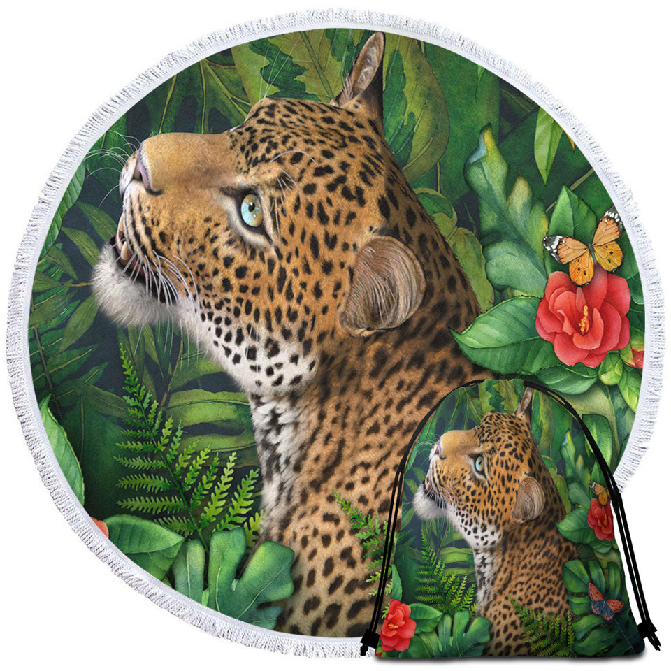 Wildlife Art Leopards Gaze Round Beach Towel