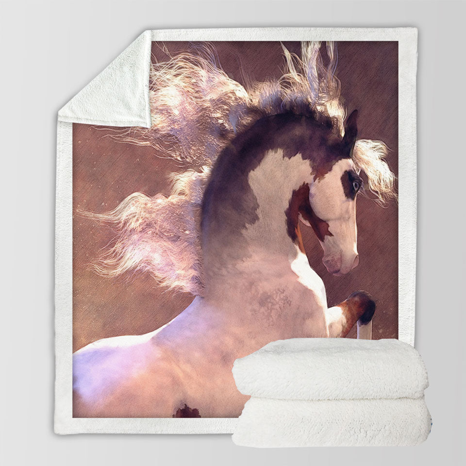 Pride Beautiful White Brown Spots Horse Throw Blanket