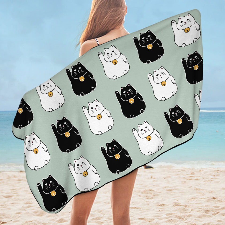 Our beach towels are made of quick-dry microfiber fabric. Although microfiber towels don't look as fluffy as cotton towels, they are soft, pleasant, and absorbent.