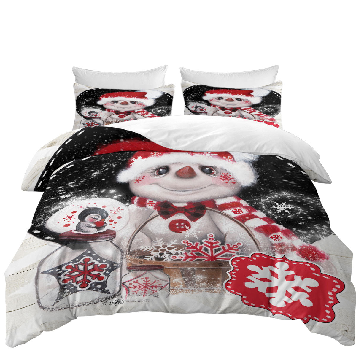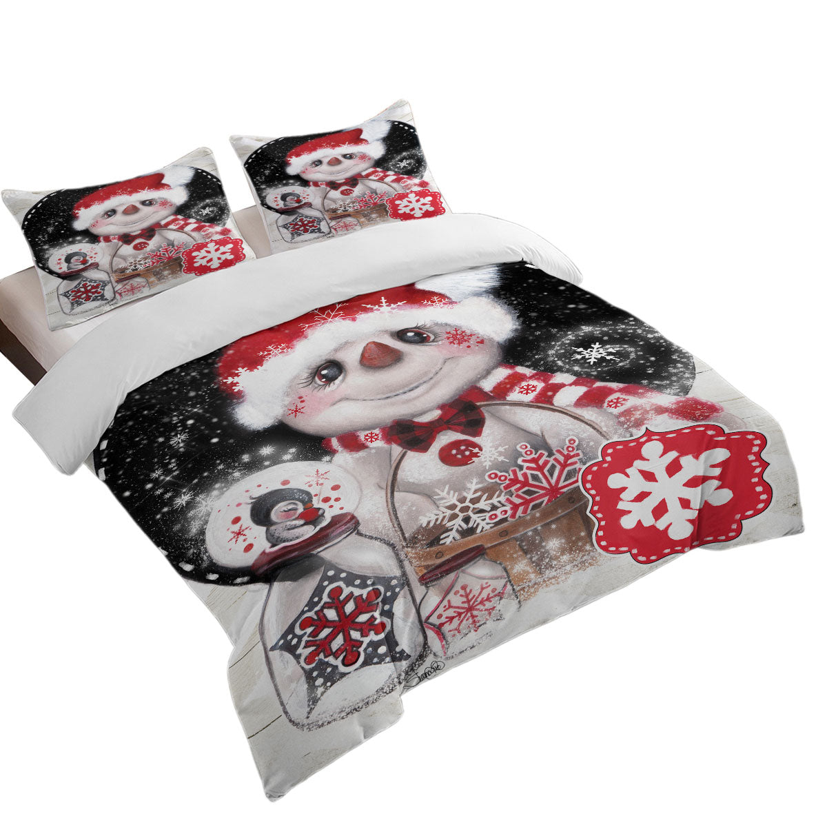 Adorable Christmas Snowflake Wishes Snowman Duvet Cover