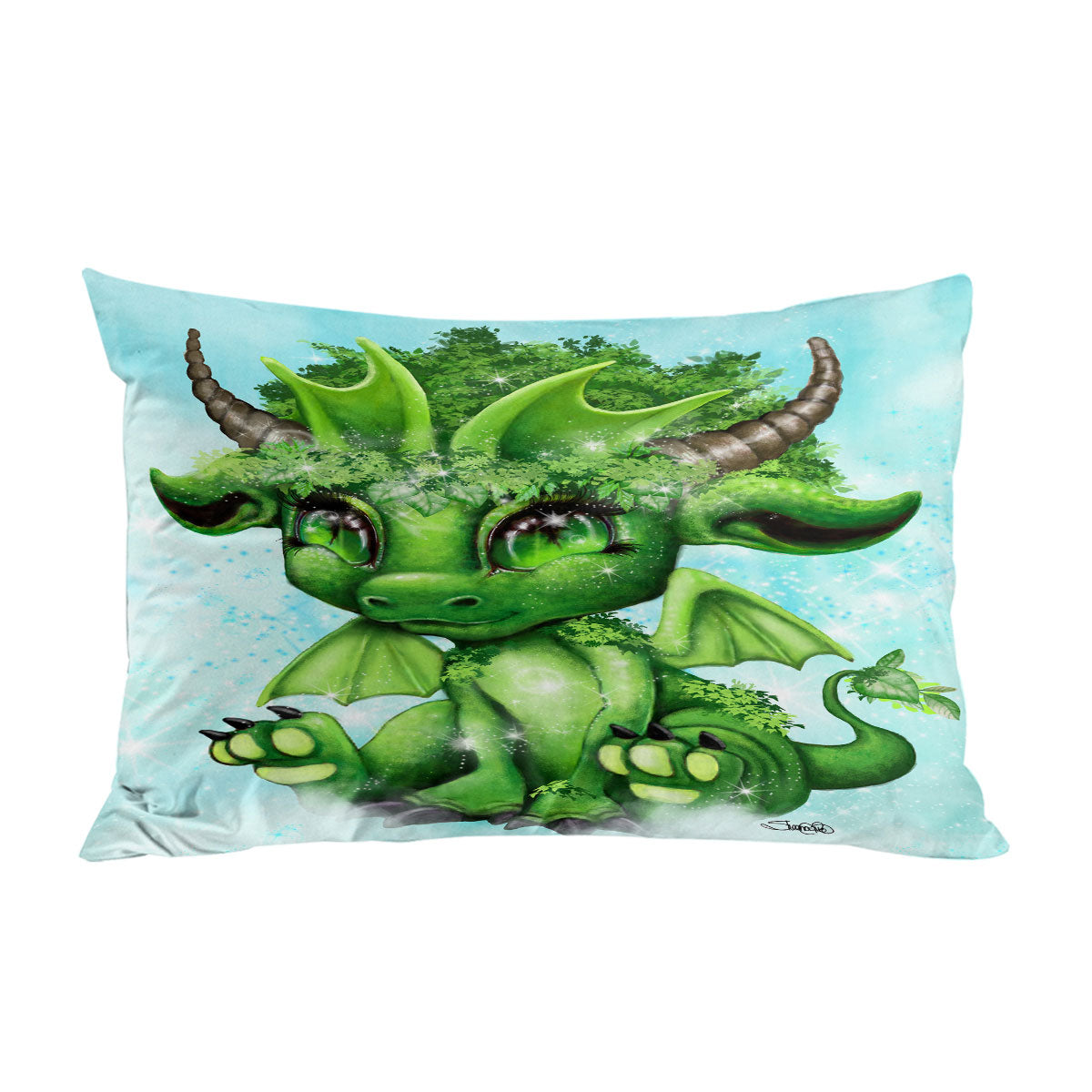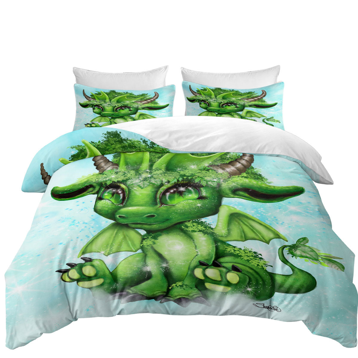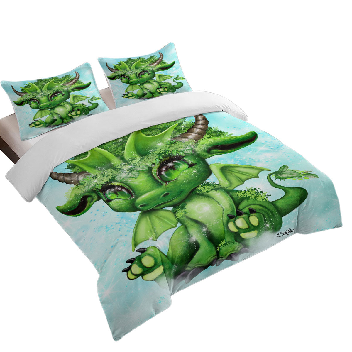 Cute Fantasy Creature Green Leaf Lil Dragon Duvet Cover