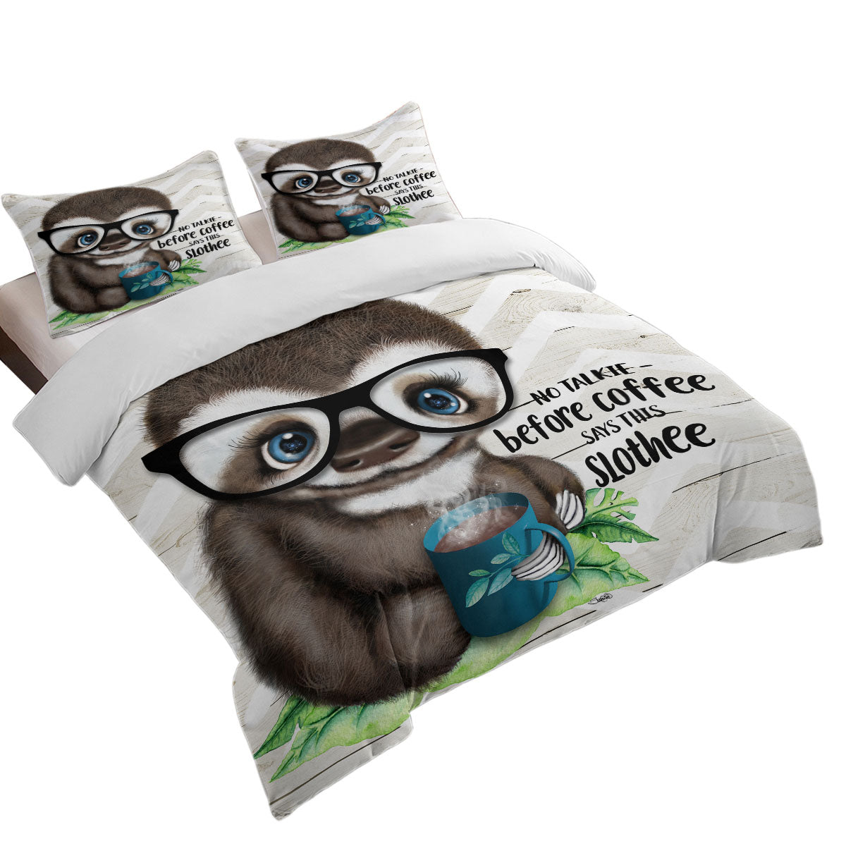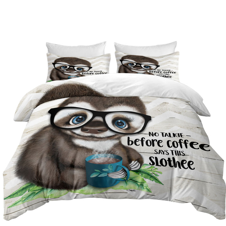 Funny Cool Quote Coffee Sloth Duvet Cover