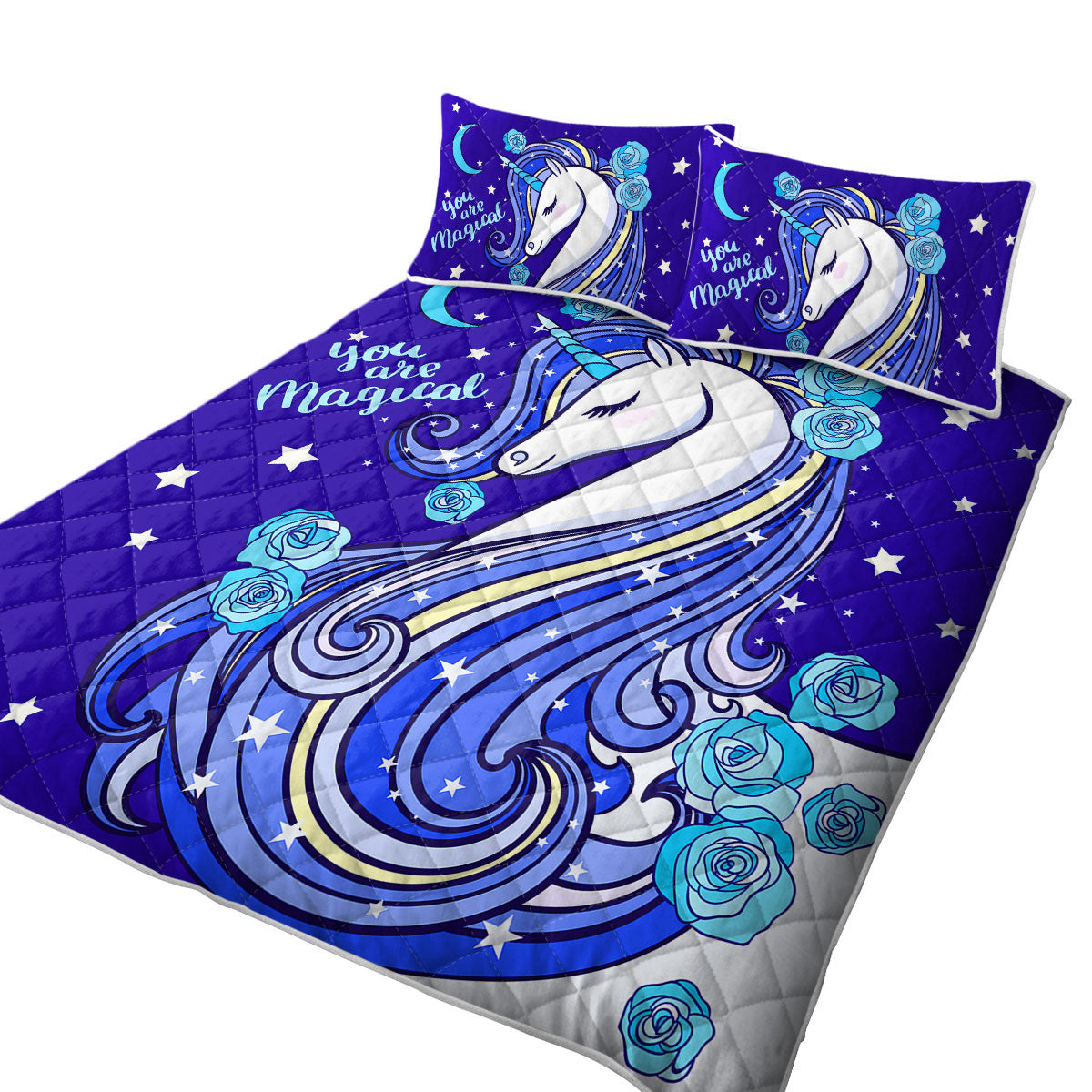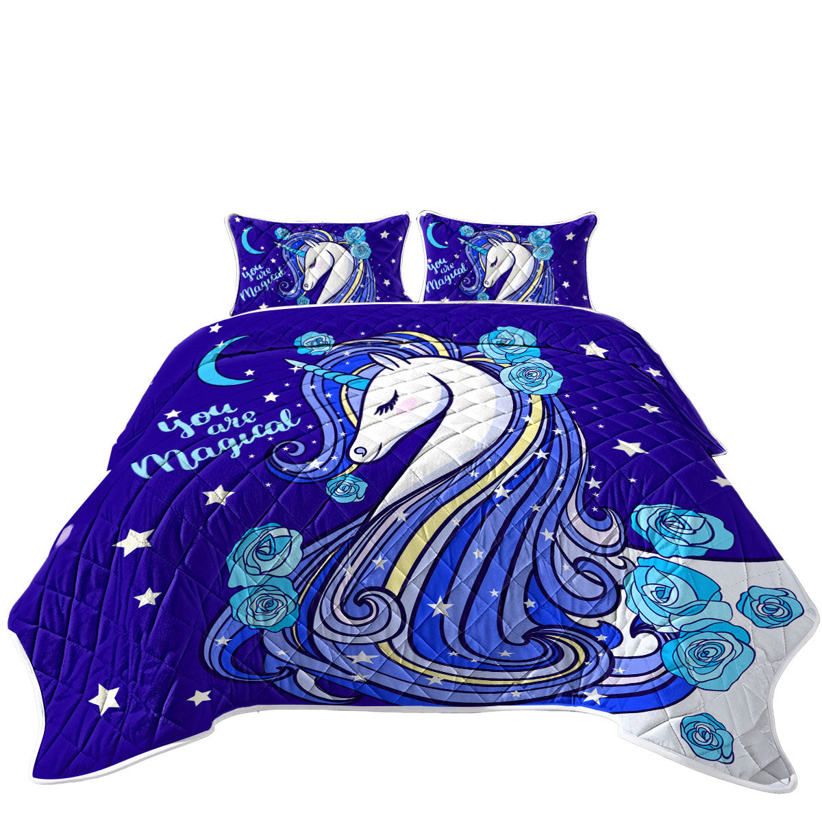 Blue Magical Unicorn King Size Quilt Sets
