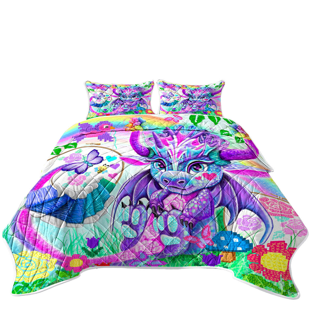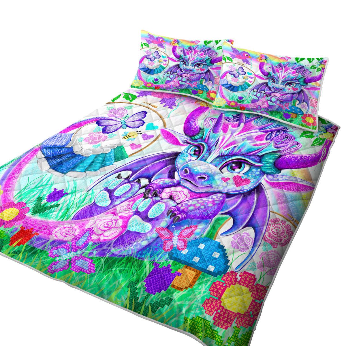 Colorful Kids Cross-Stitch-Like Lil Dragon Quilt