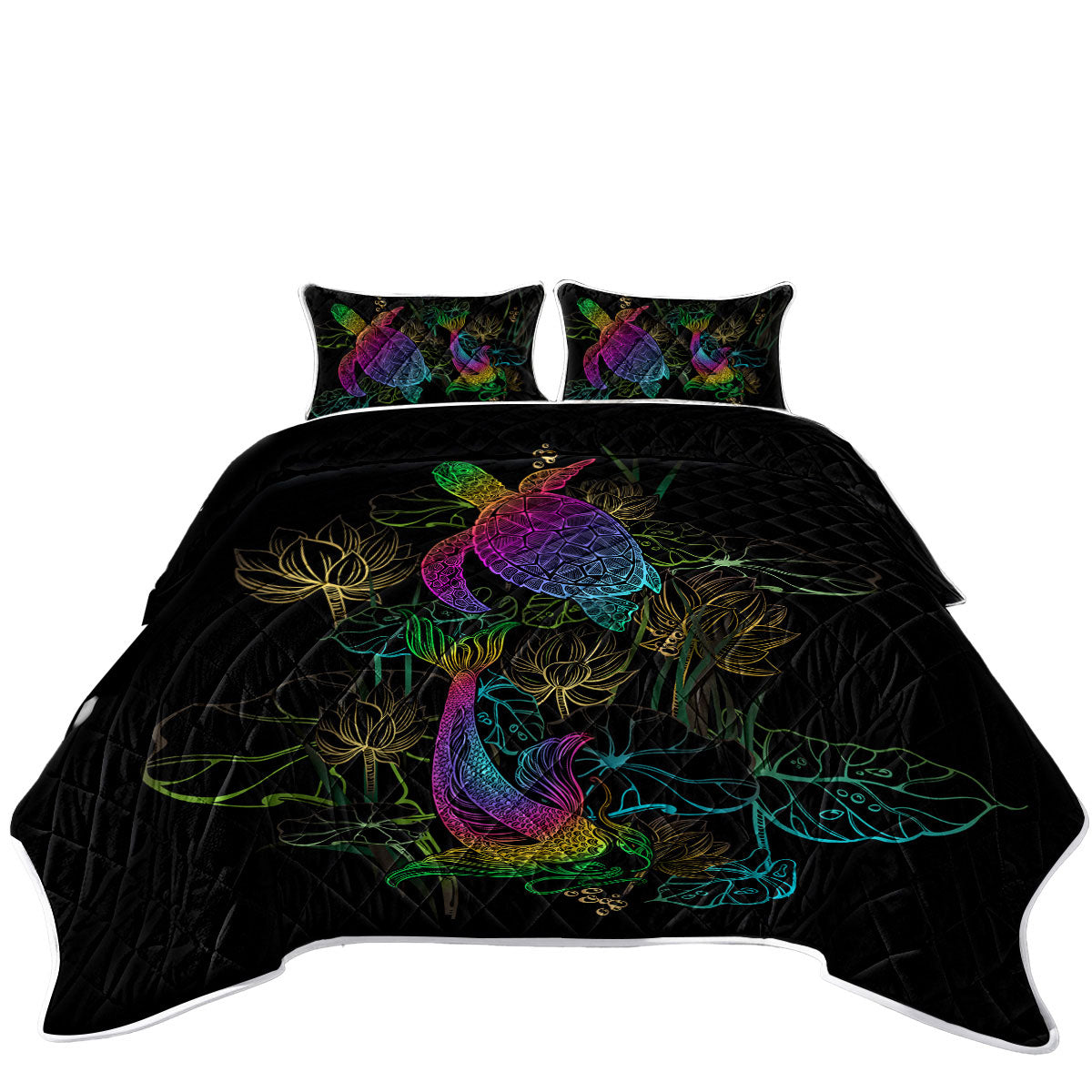 Colorful Oriental Turtle and Koi Fish Quilt