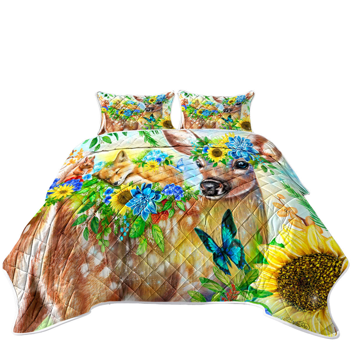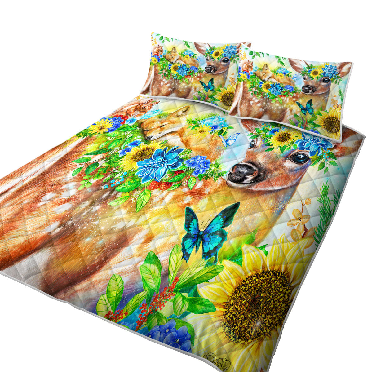 Forest Fawn Deer and Fox Squirrel Friends Coverlets