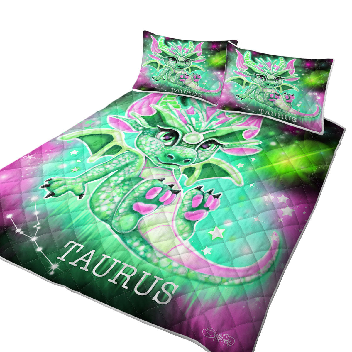 California King Quilt Sets with Green Sparkling Taurus Lil Dragon
