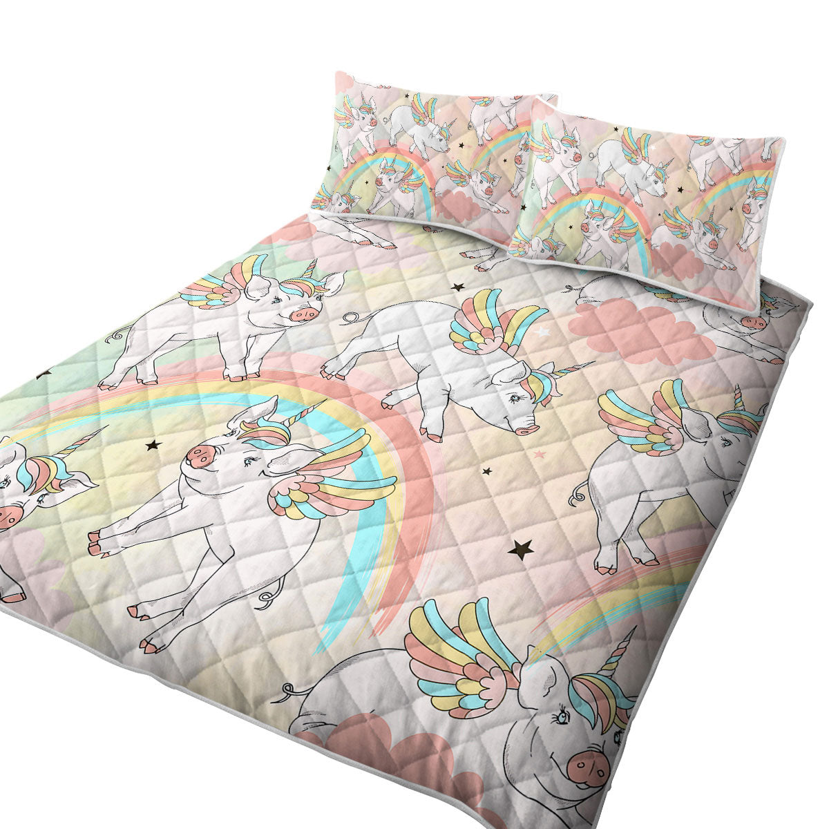 Rainbow Unicorn Pigs King Size Quilt Sets