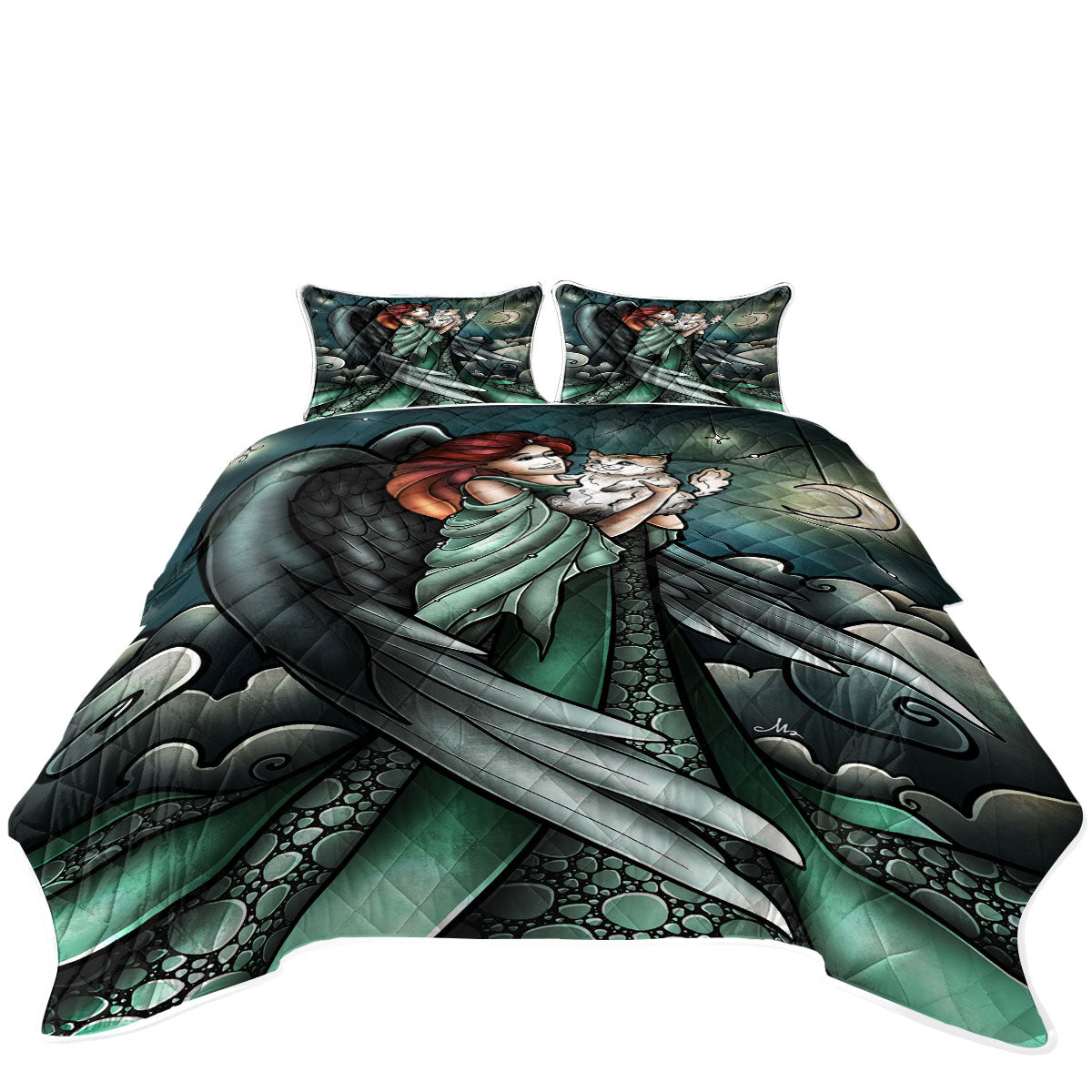 Stained Glass Art Cats go to Heaven Angel California King Quilt Sets