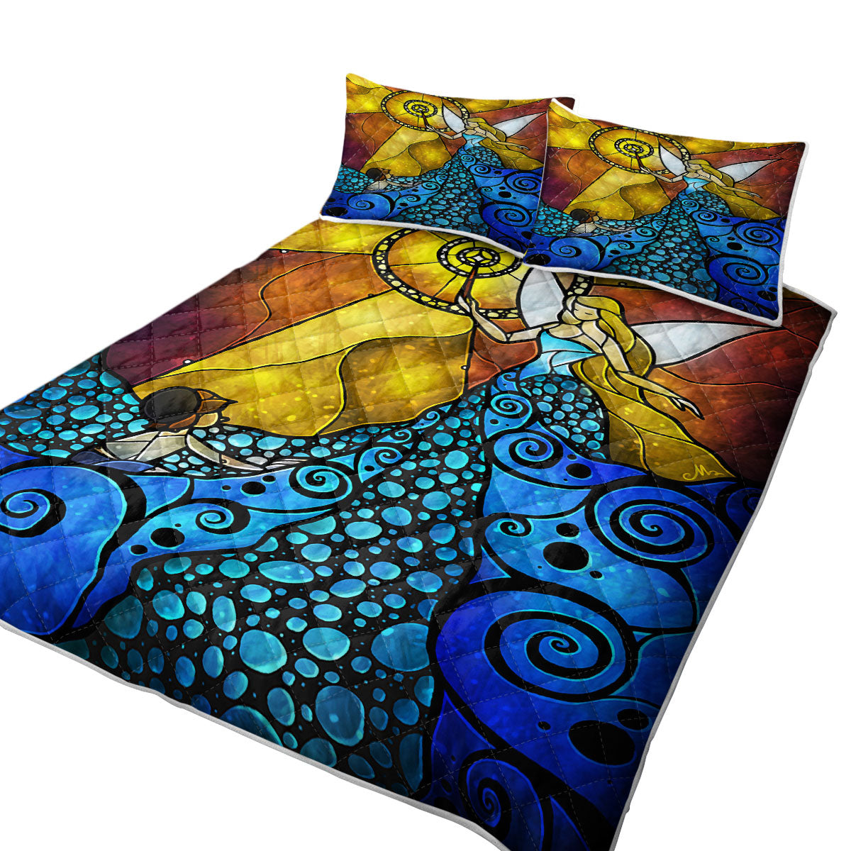 Stained Glass Art Fairy Tale Ocean Blue Fairy Quilt