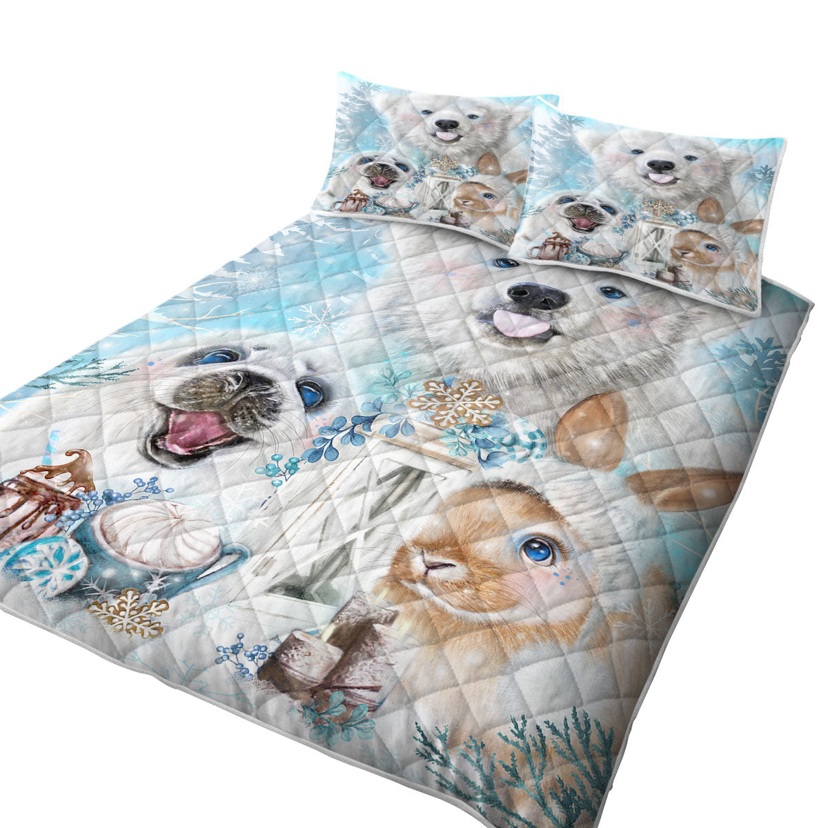 Winter Snowflake Kisses Polar Bear Seal and Bunny Quilt