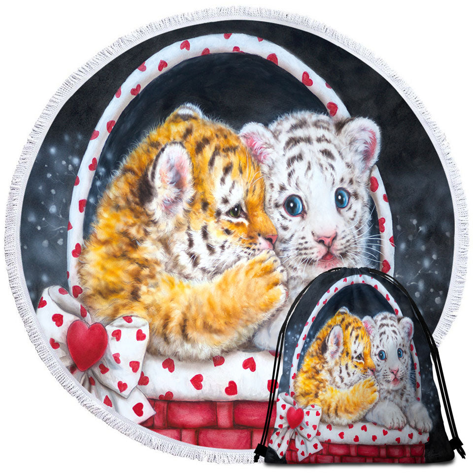 Adorable Animals Art for Kids Whisper Tiger Cub Round Beach Towel