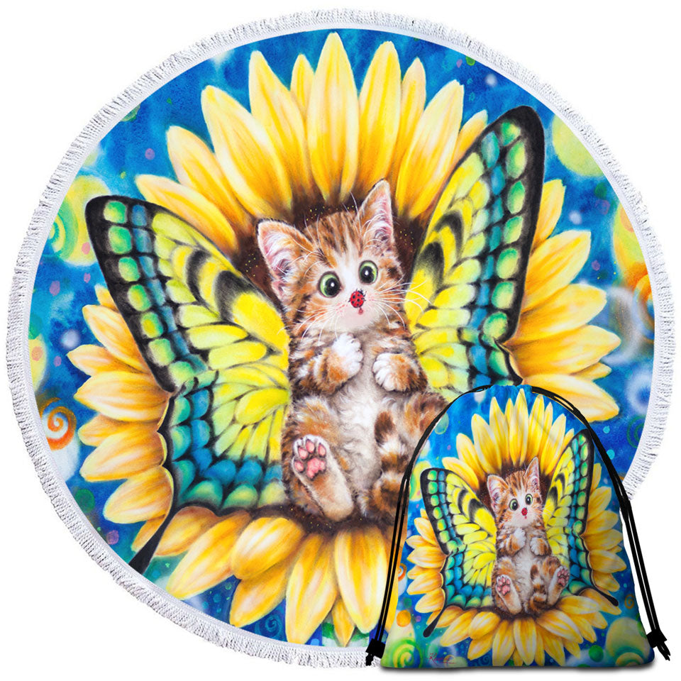 Adorable Kittens for Kids Sunflower Fairy Cat Round Beach Towel