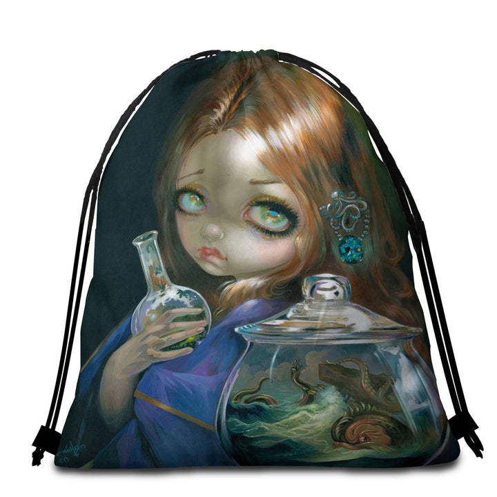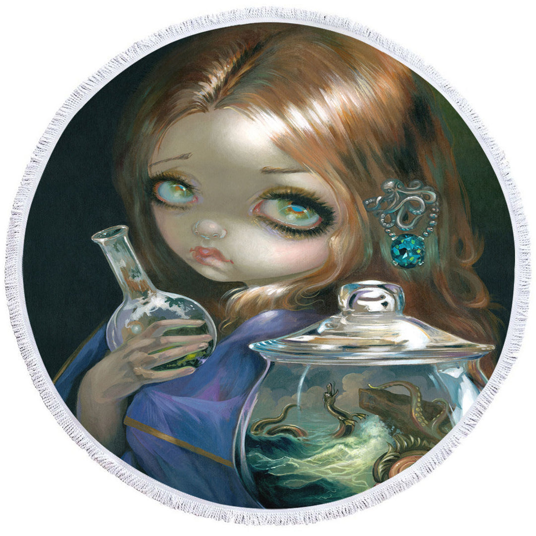 Alchemical Girl Microcosm Sea Monsters the Kraken Round Beach Towel