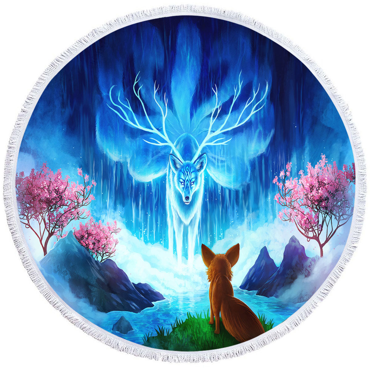 Animal Fantasy Art Wisdom Lake Fox Round Beach Towel