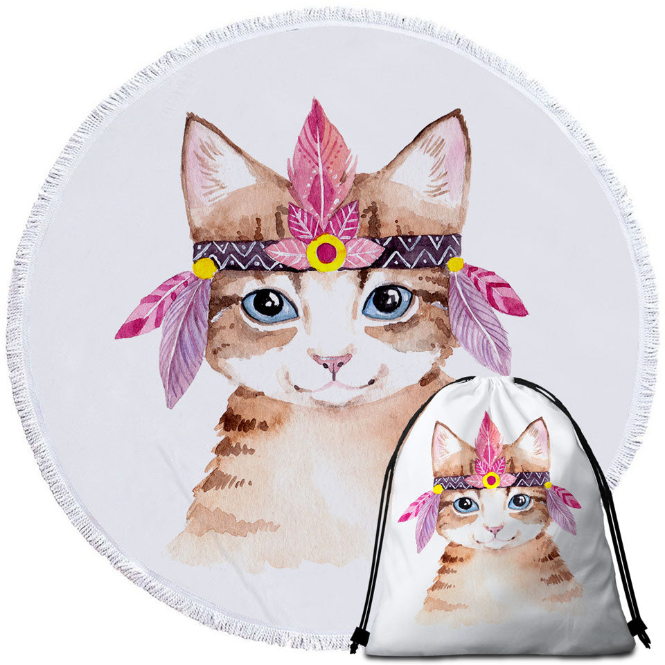 Art Painting Adorable Native American Kitten Round Beach Towel