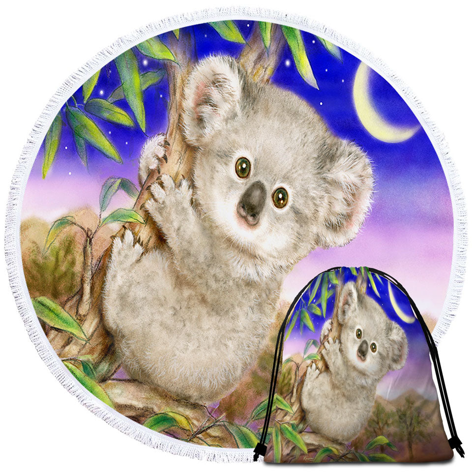 Art Painting for Kids Baby Koala Round Beach Towel