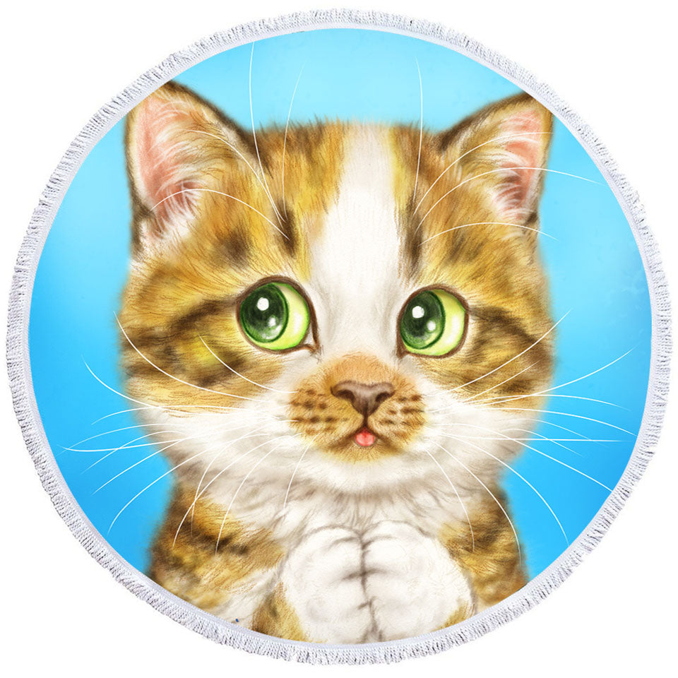 Beautiful Cat Drawings Striped Kitten Round Beach Towel