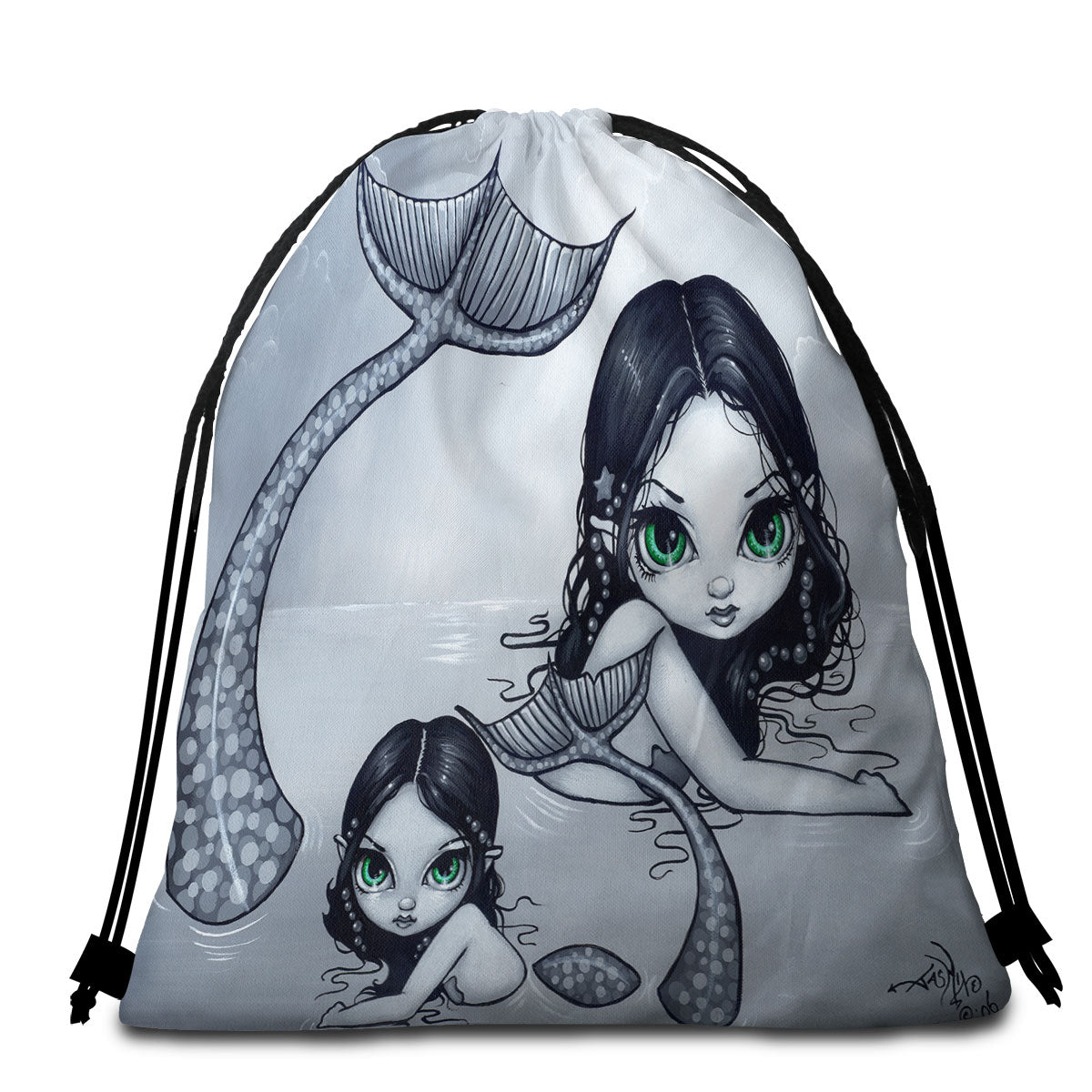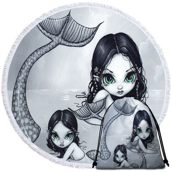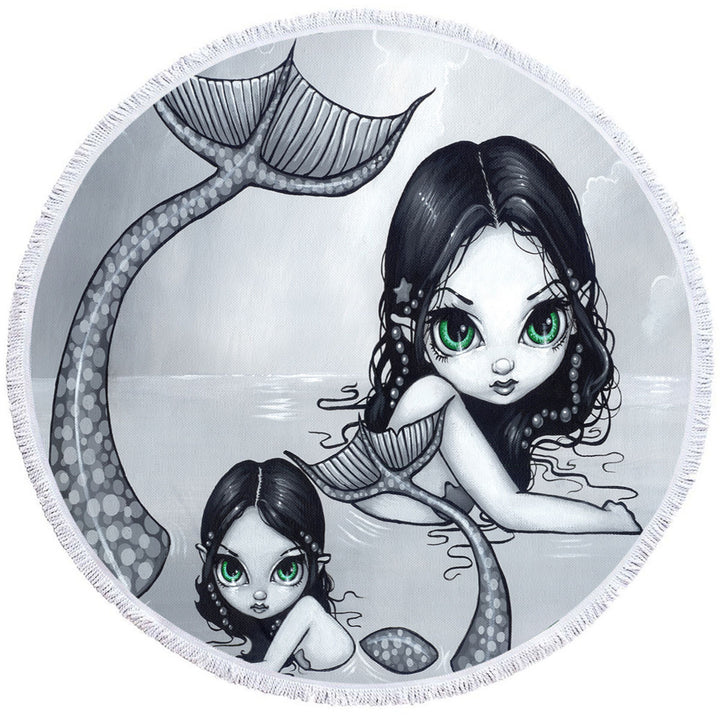 Beautiful Mermaid Mother and Adorable Baby Mermaid Round Beach Towel