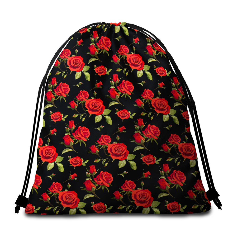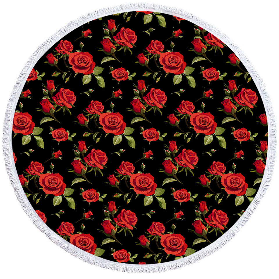 Black Background Classic Red Roses Round Beach Towel